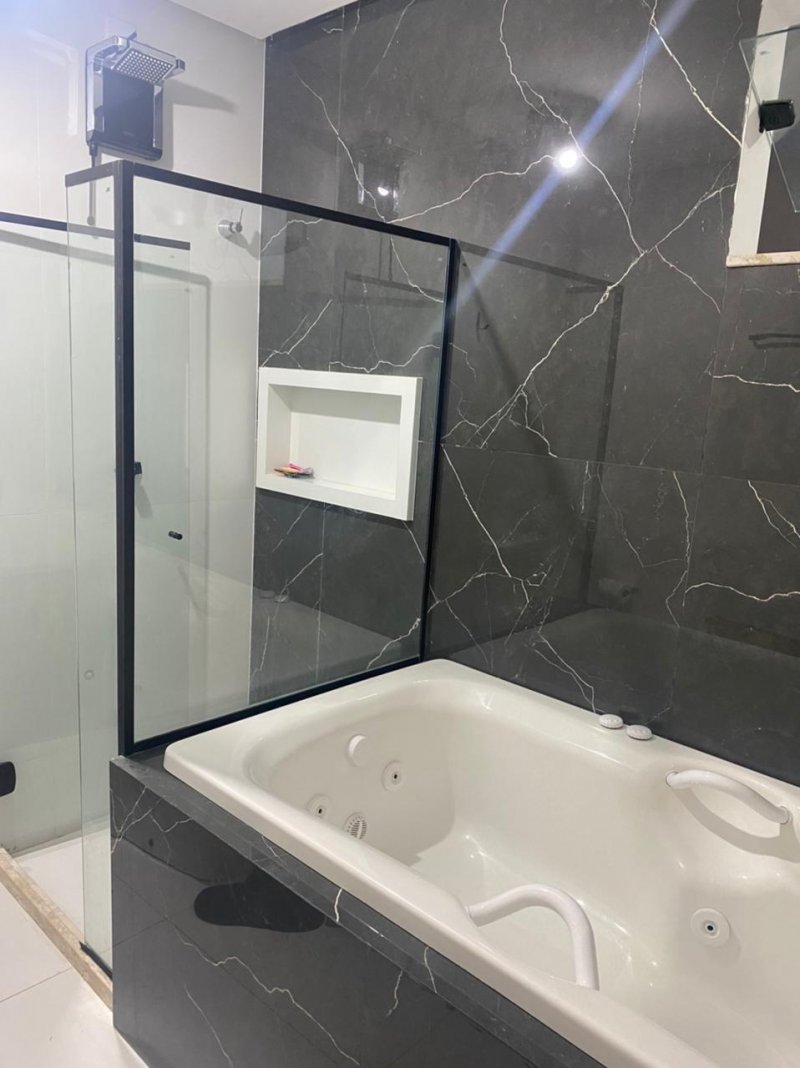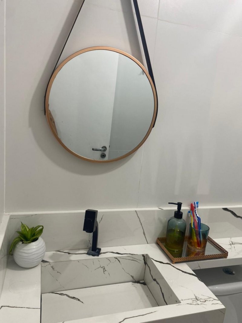 Pias dos banheiros, cozinha todas em porcelanato, assim como todo revestimento das paredes e chão até área de serviço em porcelanato tipo A.