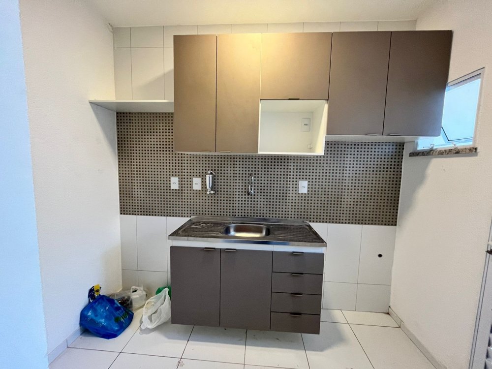 A casa possui móveis planejados na cozinha e no banheiro.