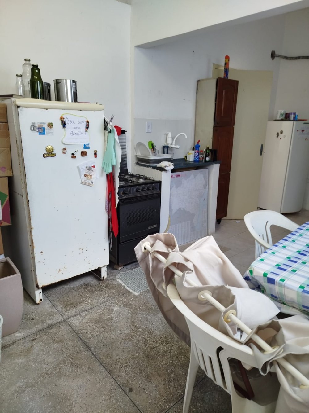 3- Copa e cozinha completas = mesa, cadeiras, fogão à gás com botijão, geladeira, utensílios em geral.