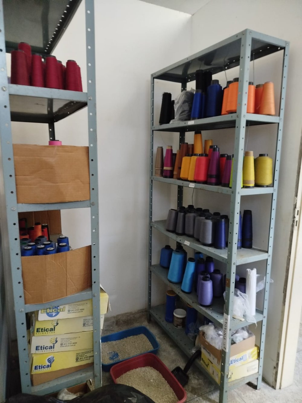 2- Dois depósitos = com prateleiras reforçadas para armazenar várias e pesadas peças de tecidos, e estoque de produtos acabados.
