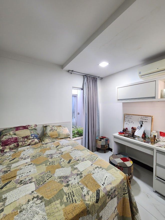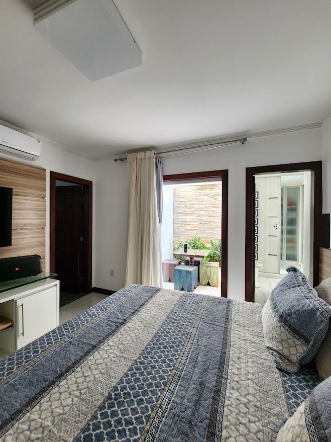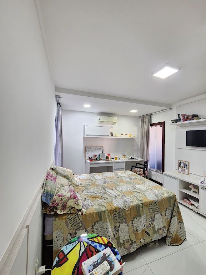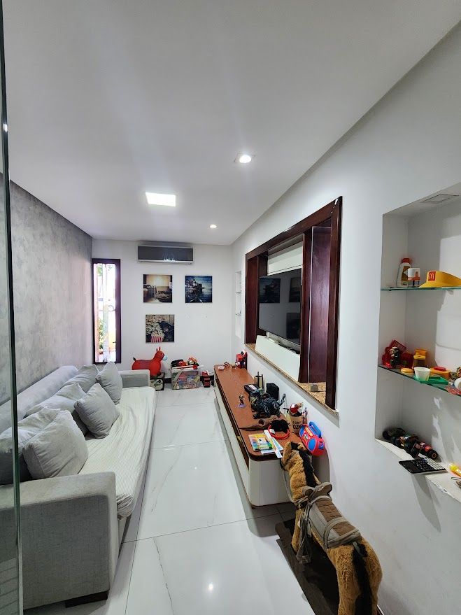 A casa possui uma sala de TV que pode ser reversivel para um quarto.
